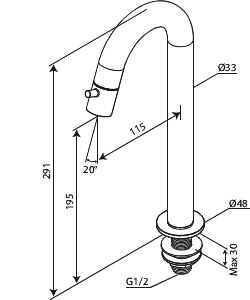 Fonteinkraan met C-uitloop large chroom